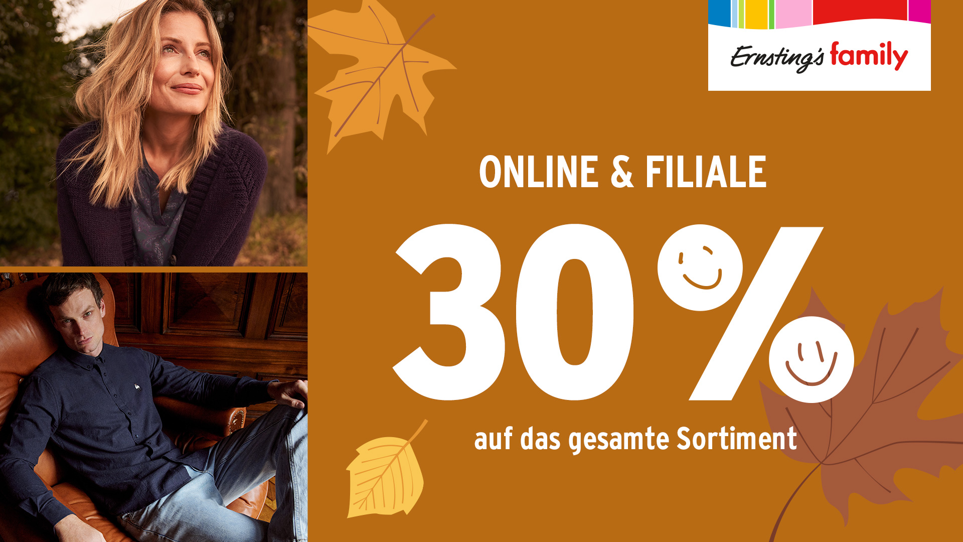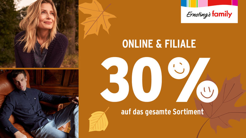 Bei Ernsting’s family gibt es vom 23. bis 25. Oktober 30 % auf das gesamte Sortiment.