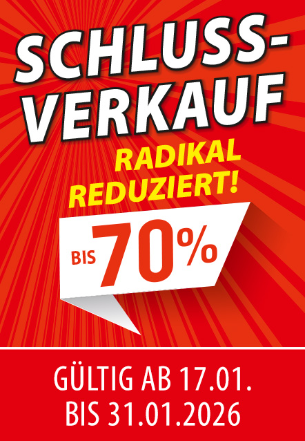 Nutzt die Gelegenheit und spart im Winterschlussverkauf mit attraktiven Rabatten von bis zu 70%. Alle Angebote im WSV sind nur bis zum 31.01.2026 gültig und nur solange der Vorrat reicht.